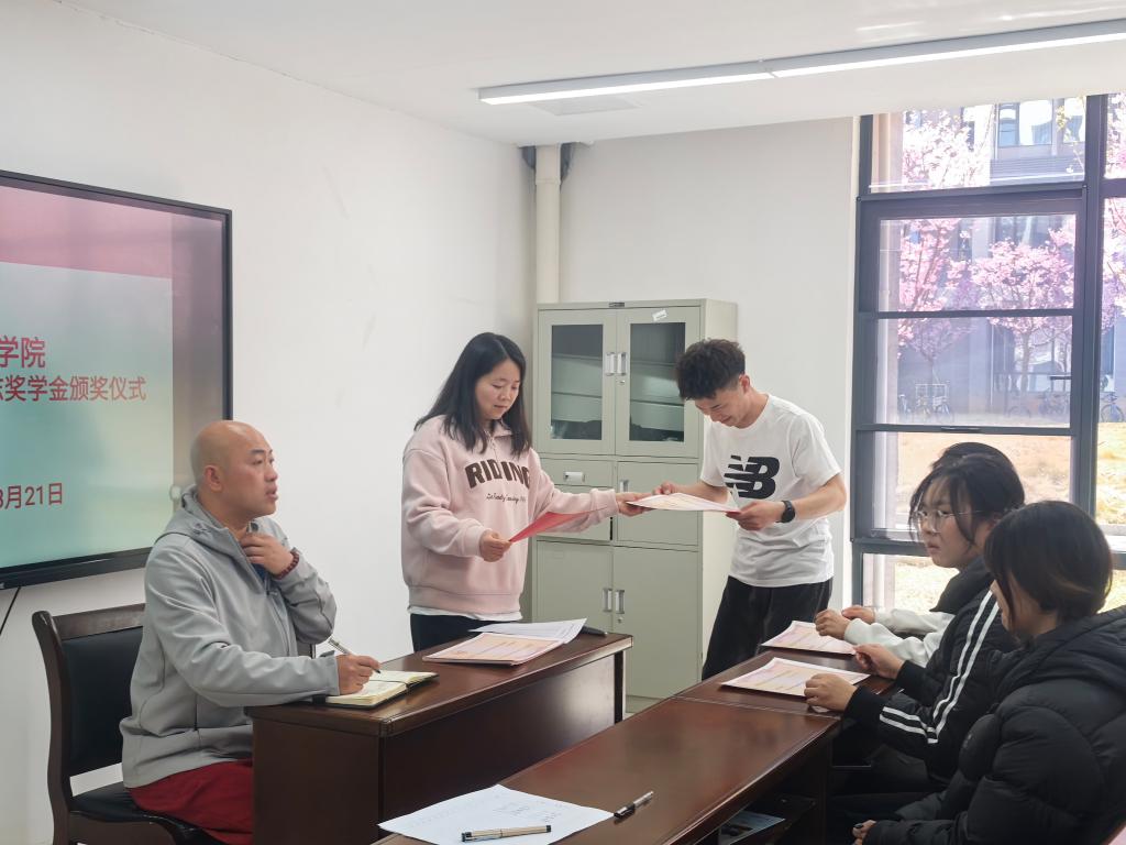 仪式上,学院学生科科长路鹏介绍了国家励志奖学金的申请流程及评选标准,并代表学院对获奖学生表示祝贺。辅导员陈世云老师宣读了获得国家奖学金和国家励志奖学金的学生名单并颁发证书。