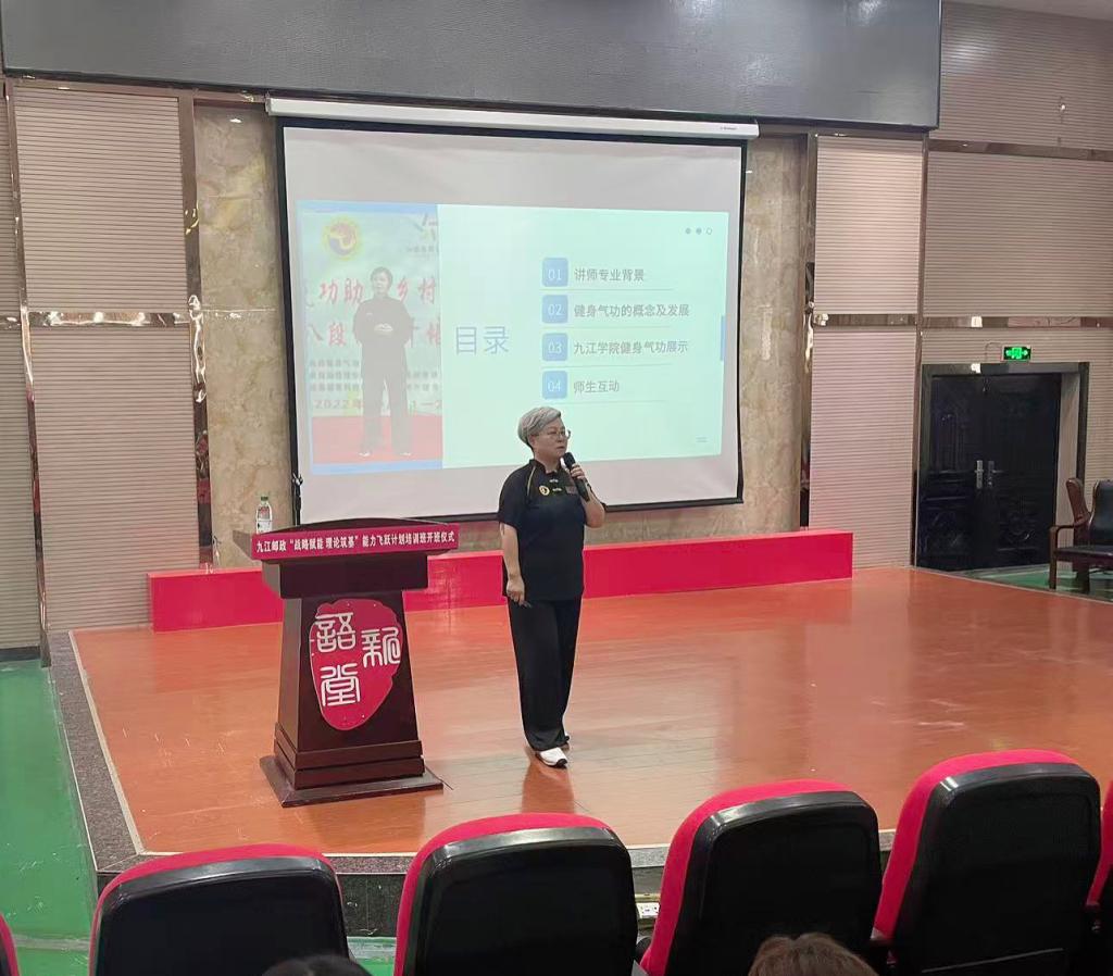 高辛琳老师以传统养生体育的五禽戏为开端,以八段锦为主线,通过几种不同的传统养生体育项目,将中华传统瑰宝淋漓尽致地展现给了在座的师生,不仅介绍了健身气功、养生体育的强身健体功效,还将其对人的心理、生理等方面的促进作用进行了一一阐述。