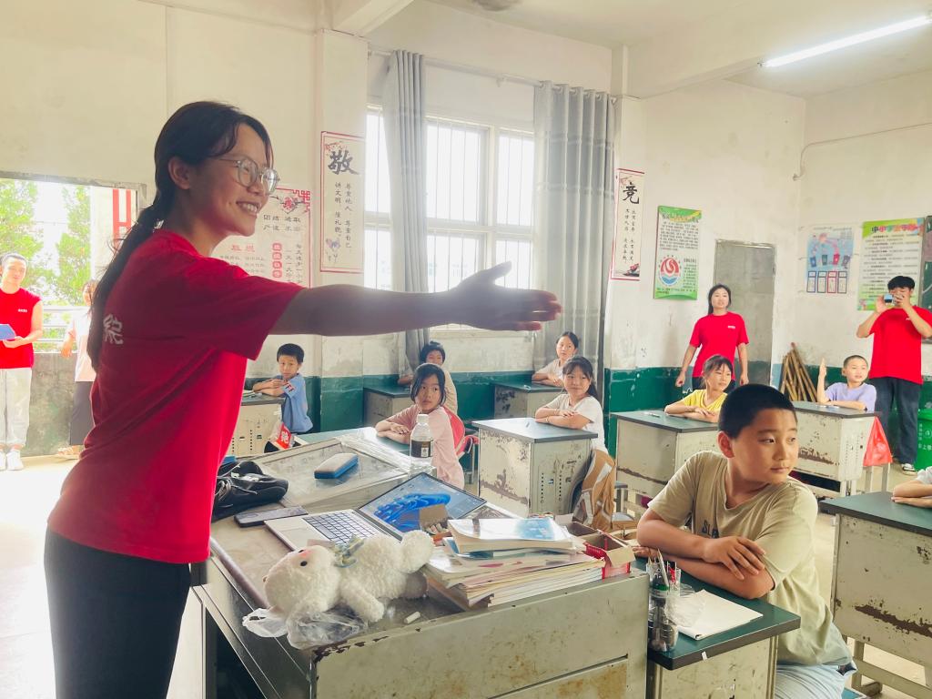 东上乡学校的“防溺水”教育课堂上,同学们结合鲜活案例与实操演示,为孩子们筑牢生命安全防线;“00 后说二十大” 说唱宣讲,将理论转化为青春韵律,让党的声音在节拍中浸润童心;“方言大挑战” 以趣味竞答推广普通话,让语言学习充满欢乐与惊喜。多样化的教学形式,如同打开知识宝库的钥匙,为乡村学子开启探索世界的新窗口。
