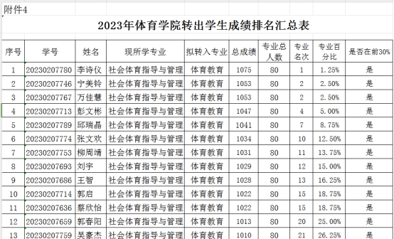根据永利集团304官网教务处文件《关于开展2023级新生转专业工作的通知》精神,永利集团304官网根据2023-2024-1学期期末成绩在本专业在校生成绩排名前30%(含)的名单,确定了拟转出名单,共13名学生。名单如下: