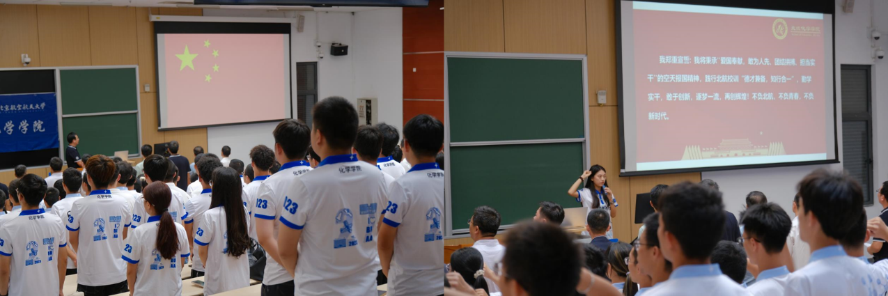 大会在庄严的国歌声中拉开了帷幕。齐唱雄壮的国歌后,集体观看《今日北航米兰milan官方网站》,该视频生动形象地展现了米兰milan官方网站的发展历程以及昂扬向上的精神风貌。随后,由米兰milan官方网站教师代表李景老师、学生代表李超、丁索琪、盛昱皓、丁乙、崔雪纯同学依次发言。均讲述了对化学的热爱和追求以及对新生活的期待,展现了化院人有梦想、有勇气、有决心、有毅力的昂扬精神。在崔雪纯同学的领誓下,全体新生庄严宣誓,不负北航,不负青春,不负新时代!
