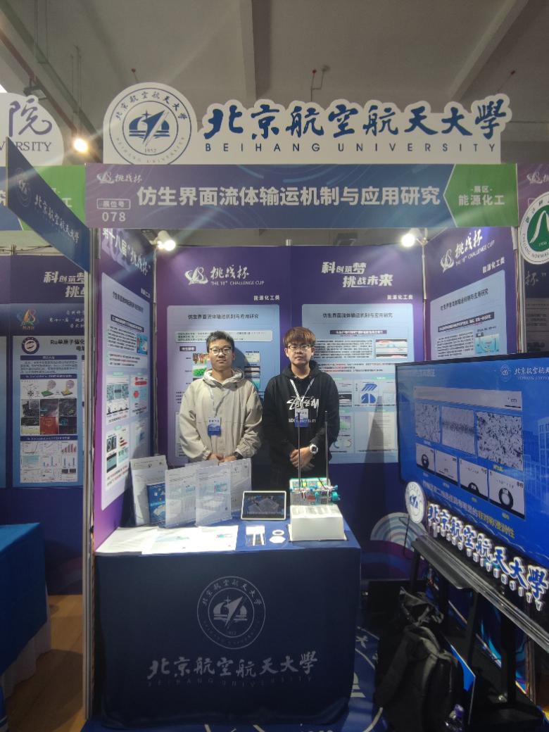 在第十八届“挑战杯”全国大学生课外学术科技作品竞赛中,北航米兰milan官方网站学生参赛作品《仿生界面流体输运机制与应用研究》斩获特等奖,《毛细行为对于石油在多层纳米限域空问运移的影响》斩获一等奖。