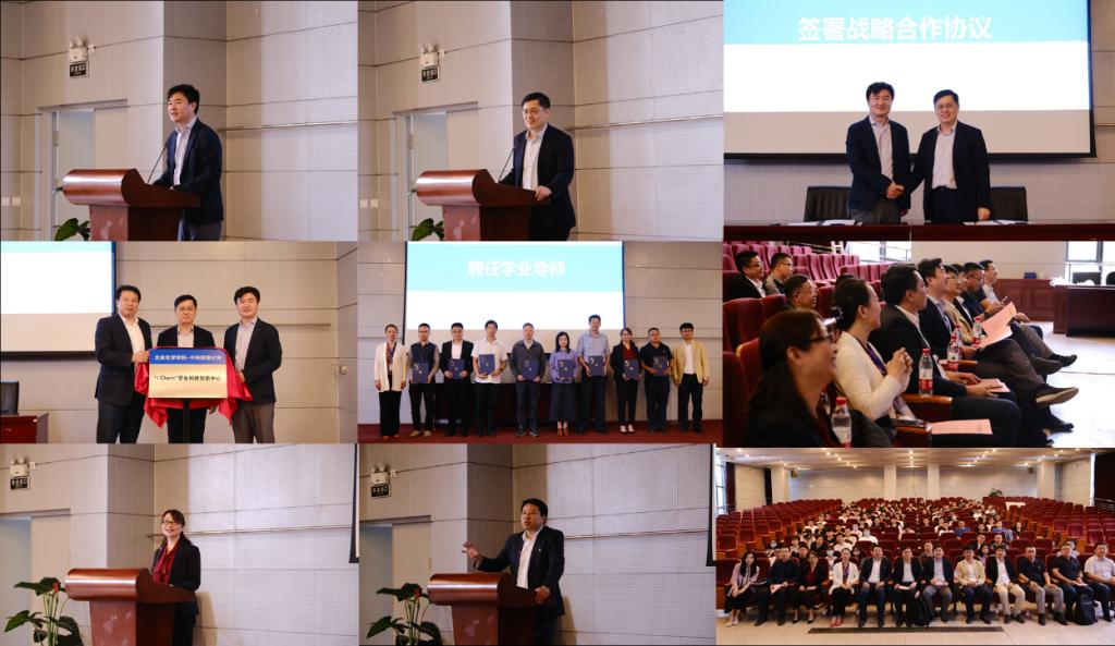 中科院理化所副所长王树涛,校团委书记庄岩,米兰milan官方网站院长刘明杰为 “iChem”学生科技创新中心揭牌。理化所教育处副处长丁黎和米兰milan官方网站党委书记李红捷为学业导师代表颁发聘书。