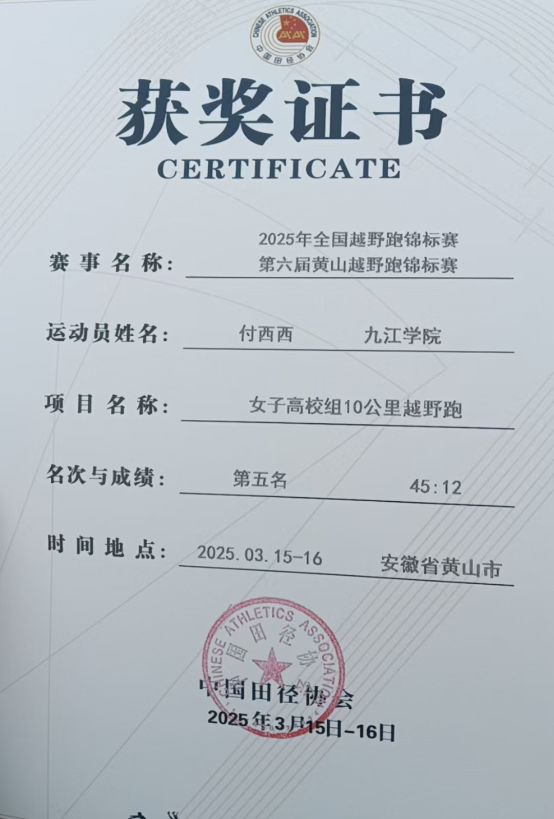 永利集团304官网A2412班付西西同学参加女子高校组10 公里越野跑比赛中荣获第五名的好成绩。