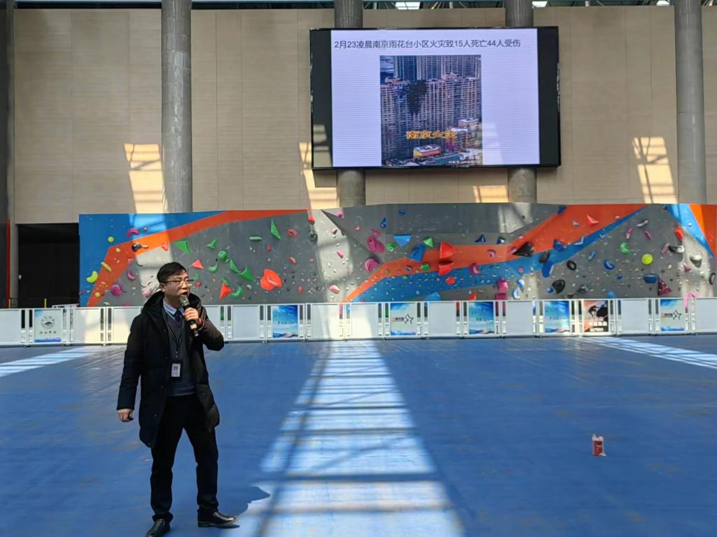 本次演练邀请到九江市消防安全服务公司主任级讲师陶涛为师生们作消防安全知识演讲及组织消防应急疏散演练。