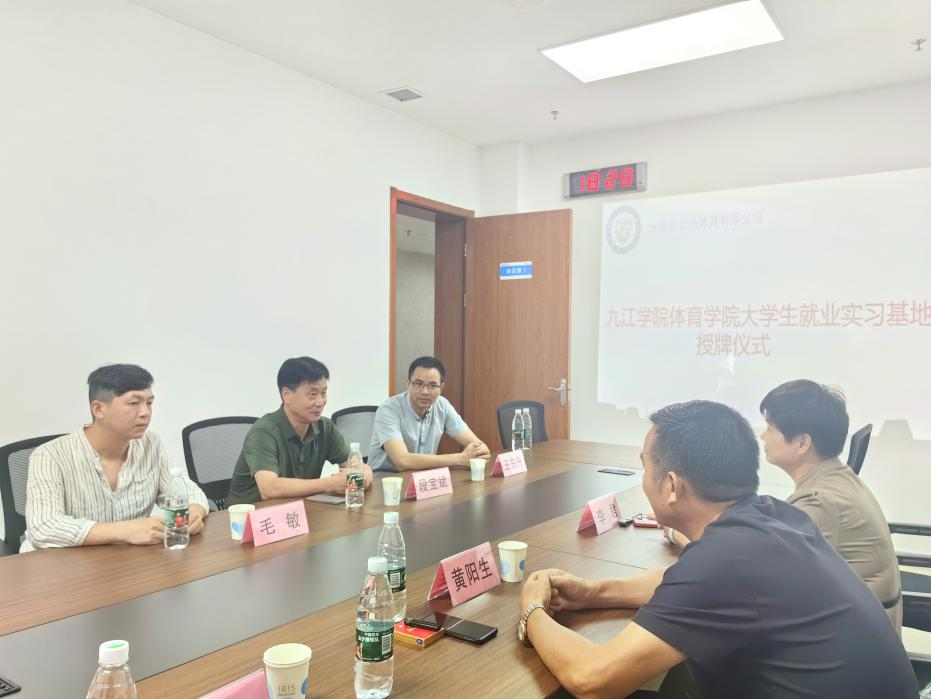 永利集团304官网通过前期对永修县宏尚体育有限公司的调研与了解,经学院领导同意,于2024年5月29日下午,永利集团304官网院长段宝斌、永利集团304官网副院长王东升、永利集团304官网社体教研室主任毛敏一起到访宏尚体育有限公司,参加实践教学基地的签约与授牌会议。